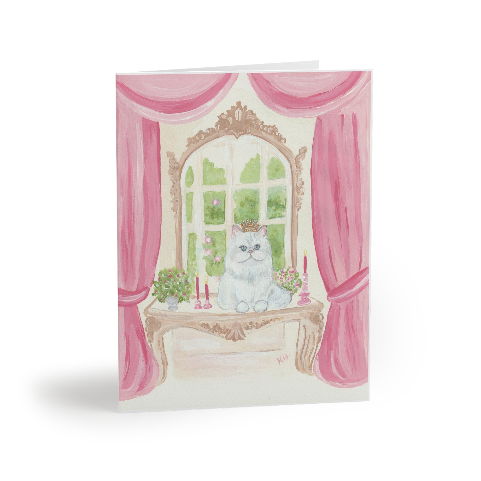 Cat "Queen of Versailles" White Persian Painting Art PRINT or NOTECARDS Set
