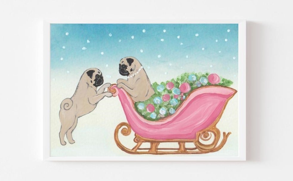 Add a delightful touch of Pug-inspired whimsy to your home decor with this Hand-painted Art Print. Perfect as a gift for Pug enthusiasts, a nursery room, or as a special addition to your own space, this print is sure to bring smiles for years to come.